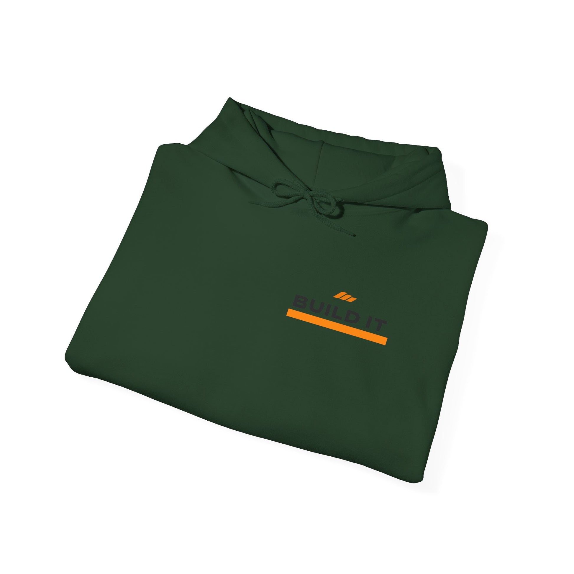 Soft, roomy, and quietly bold — this hoodie is built for people who make things with their hands and their heart. A clean white canvas frames a small, confident “BUILD IT” chest mark and a delicate geometric building sketch across the back. It wears like a familiar workshop favorite: warm pockets to slide your hands into between tasks, a double-lined hood you can pull up on blustery mornings, and a classic fit that layers easily over tees or under jackets. The subtle construction motif speaks the language of craft without shouting, so it feels right at the job site, at a weekend project, or grabbing coffee after a long day of solving problems.